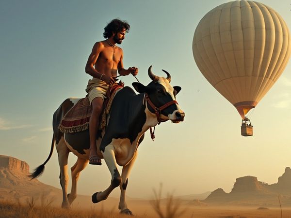 Anup’s life changed ven he met Diksha, ze girl vith ze brightest eyes and ze kindest smile. “She ees like ze sun,” Anup thought, “und maybe she vill help me rise like ze hot air balloon.”Anup vas not rich, but he worked hard as a cow racer, earning every rupee he could. “Ze cows, zey run faster zan me,” he joked, “but I vill save enough to make Diksha smile.”After months of saving, he bought a ticket for Diksha to go on ze hot air balloon. “For you, Diksha,” he said, handing her ze ticket. “Zis ees my dream, but I vant you to experience eet.”Diksha’s face lit up like ze morning sun. “Oh, Anup,” she said, “zis ees so vundarful! I can see myself marrying you, you are so thoughtful.”Anup blushed, his heart soaring higher zan any balloon. He vould stay on ze ground, but Diksha vould carry his dreams vith her to ze skies.